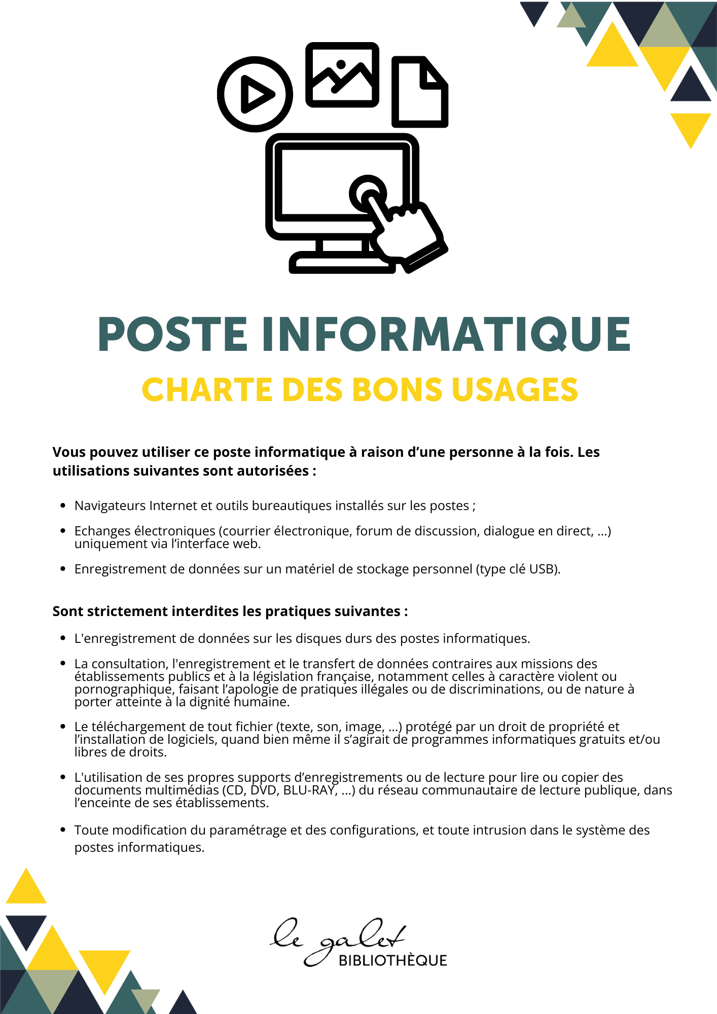 A noter que vous êtes responsable des documents empruntés sur votre carte. En cas de retard dans le retour des documents, votre droit de prêt est suspendu jusqu’au retour du ou des documents en retard.